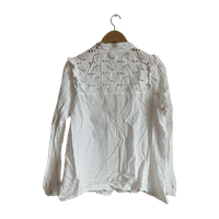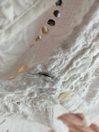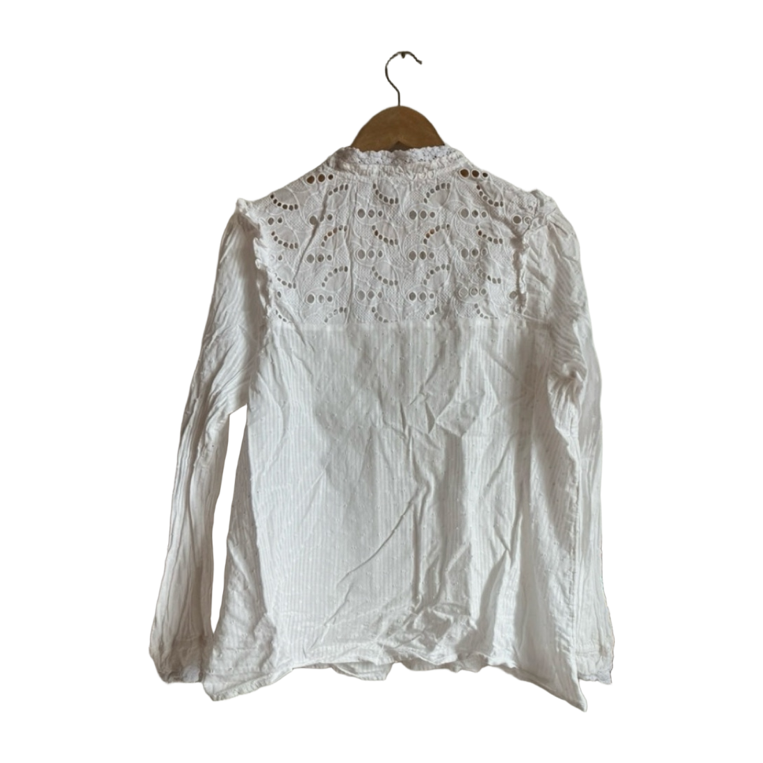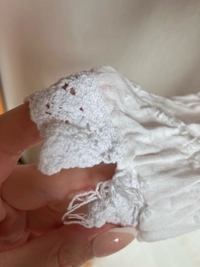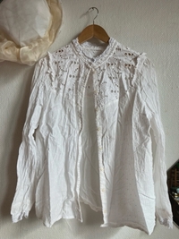 a light cotton blouse with ruffles✨ lace added myself and it's a bit frayed after machine washing. bought used but used myself only once