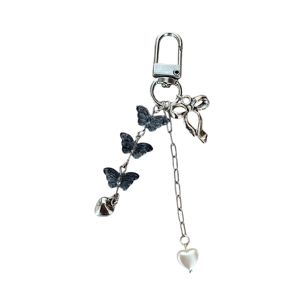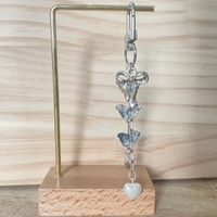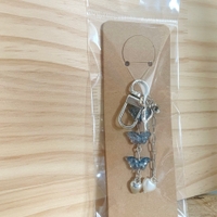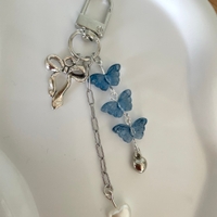 Käsintehty laukkukoru sinisillä lasiperhosilla ja rusettiriipuksella💙
