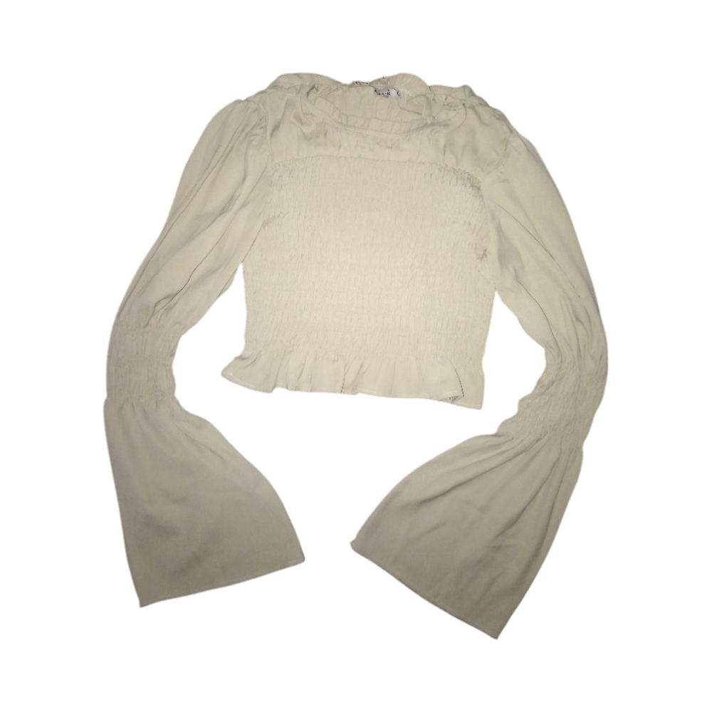 Beige paita pitkillä hihoilla ja rypytyksellä