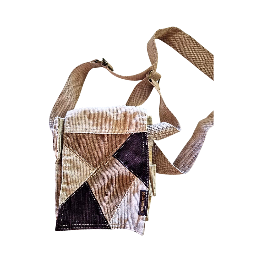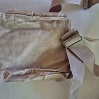Beige ja ruskean sävyinen pieni olkalaukku, säädettävä olkaimen pituus