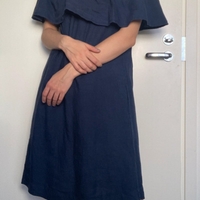 Marc O'Polo pure 100% linen dress. Navy blue. Off shoulder with ruffle on top. Size 34 but can also bigger size