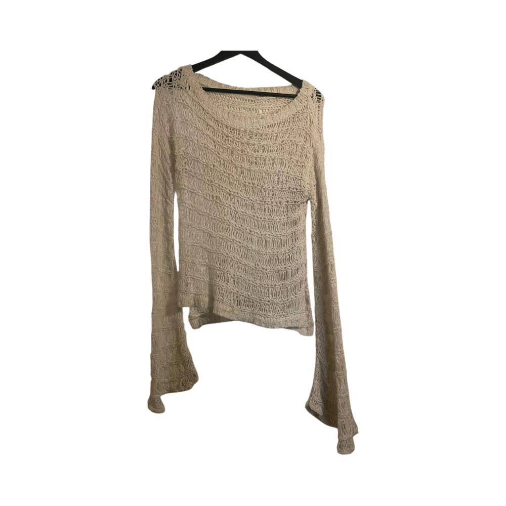 Lightweight open-knit long-sleeve crochet sweater. Wide arms