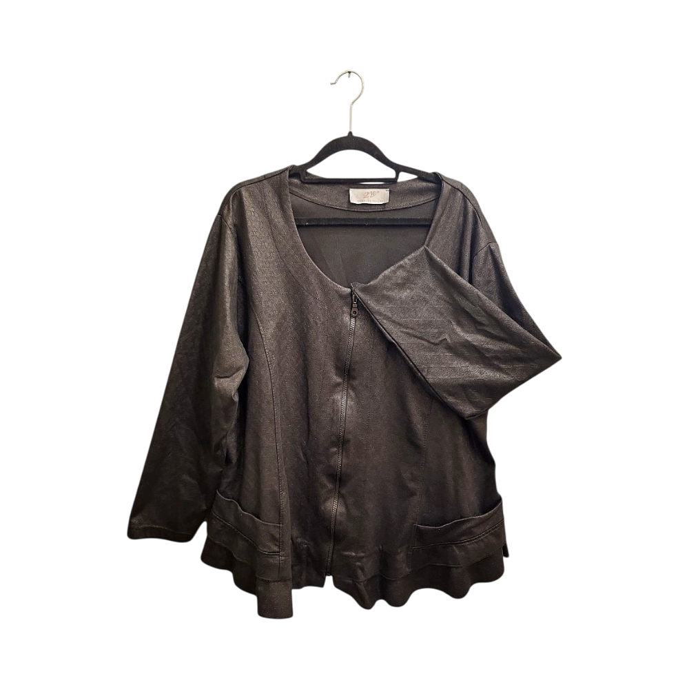 Musta helmallinen bleiseri vetoketjulla ja kuvioidulla pinnalla. Koko: 50/52