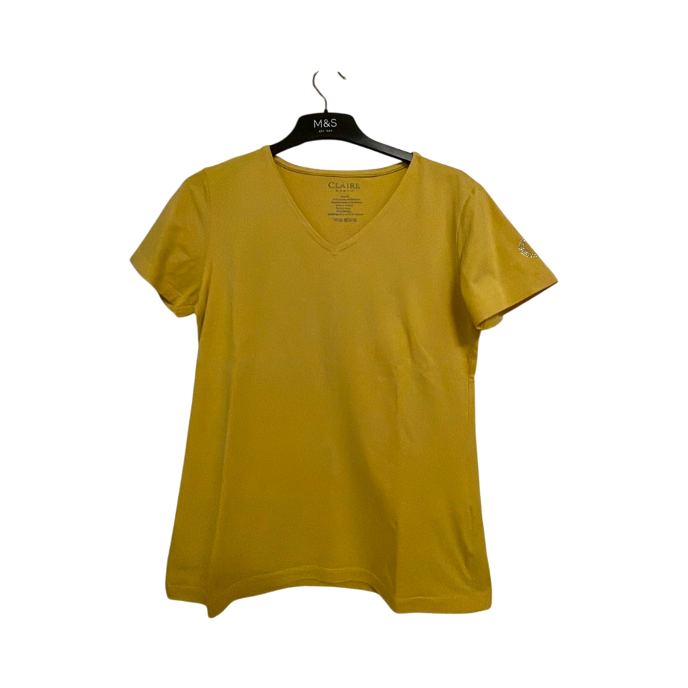 V‑neck t‑paita, strassikoriste hihassa, lyhythihainen. Claire