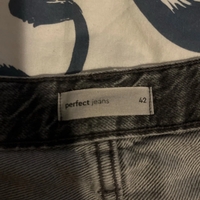 Väljäistyyppiset harmaat denim-farkut, käytetyt.