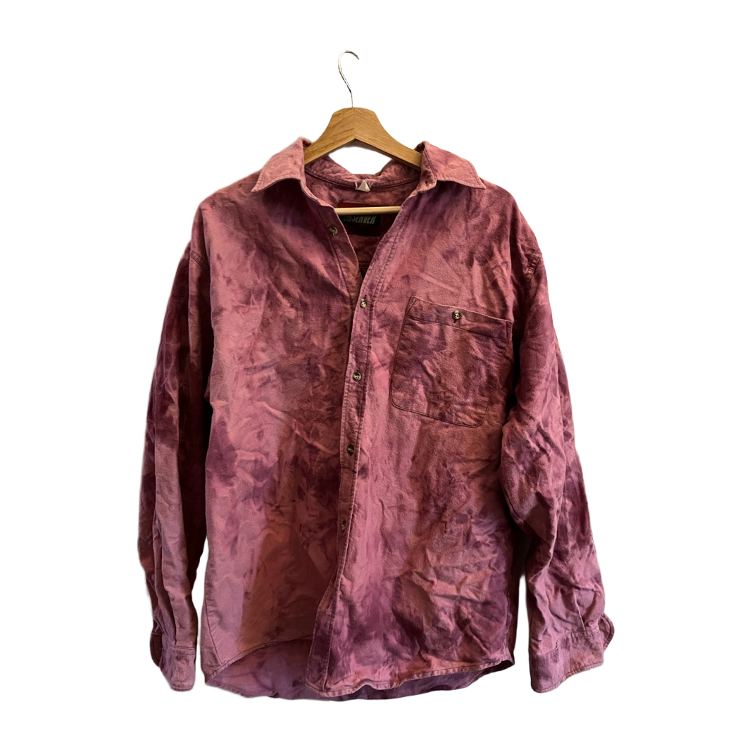 A custom shirt bleached by myself. Was originally red but now has this pink / ”off-magenta” (is that even a word) color.