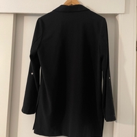 Hyvässä kunnossa oleva musta bleiseri koko XS. Vähän over size joten mahtuu varmasti koolle S ja M myös. Taskut sivuilla sekä helmassa halkiot. Hihat saa napilla käärittyä ylös.
