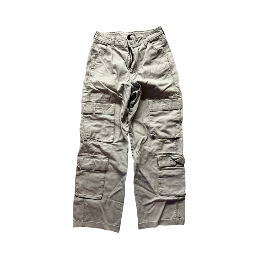 Rento, leveävartiset taskuilla varustetut cargo-housut.