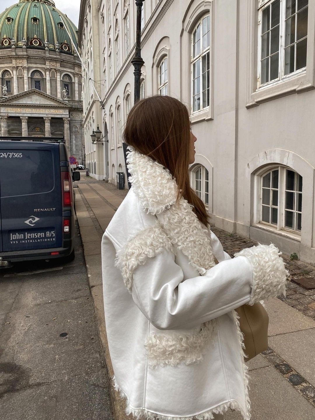 White Sherpa jacket. Only used a few times, perfect condition. Purchased on and exclusively available on Revolve, the specific brand is called ‘Eaves’.