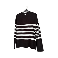 H&M black and white striped knit pullover. Lightweight and breathable, perfect for layering during early fall days or wearing on its own during cooler summer evenings. Classic horizontal stripe design in a relaxed fit. In very good condition, no visible flaws. Size small.