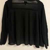 Kaunis ohut neule, jossa takana pliseerattu osio. Laskeutuu kauniisti päällä. Siisti, vähän käytetty. Kiva esim. juhlamekon kaveriksi.