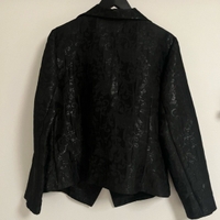 Tyylikäs kimaltavalla langalla koristeltu musta jakku. Ryhdikäs päällä. Siisti, ei käytön jälkiä.