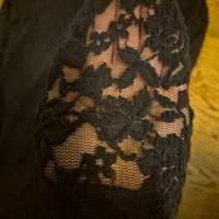 Pehmoisella sisäkankaalla vuorattu musta joustava pitsimekko etsii uutta kotia <3 Täyspitkät hihat läpikuultavat, katso yksityiskohtakuvasta. Sisäkangas 95%viskoosia ja 5% elastaania. Ilmoitettu materiaali koskee pitsikangasta. Tässä näyttävä ja silti mukava mekko, jossa ei ahdista liikkua!