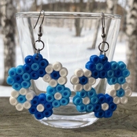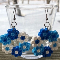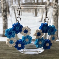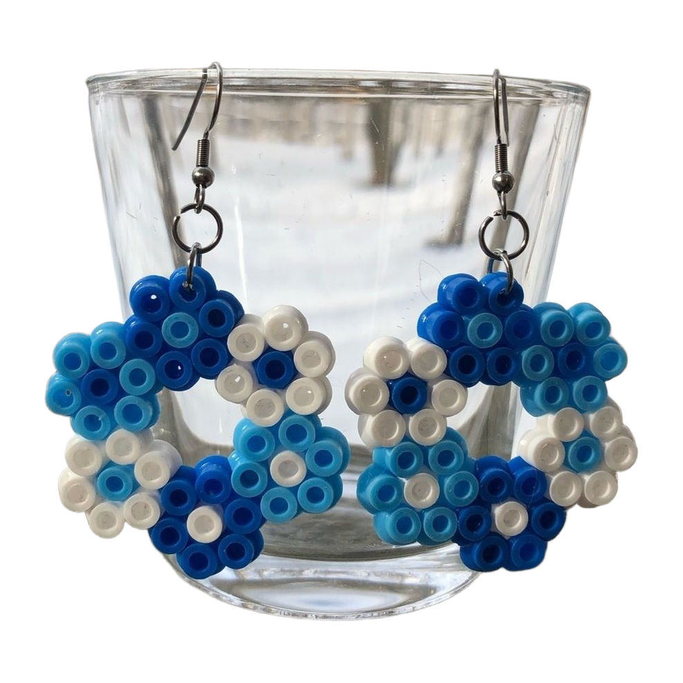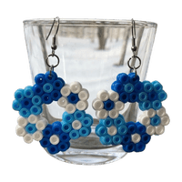 Sini-valkooset uudet käsityönä tehdyt kukkakranssi korvakorut hamahelmistä. Nouto Heinäpäästä tai postitus. Koodilla KR59089 ilmainen toimitus. #jewelry #earring #handmade #summer #summerfashion