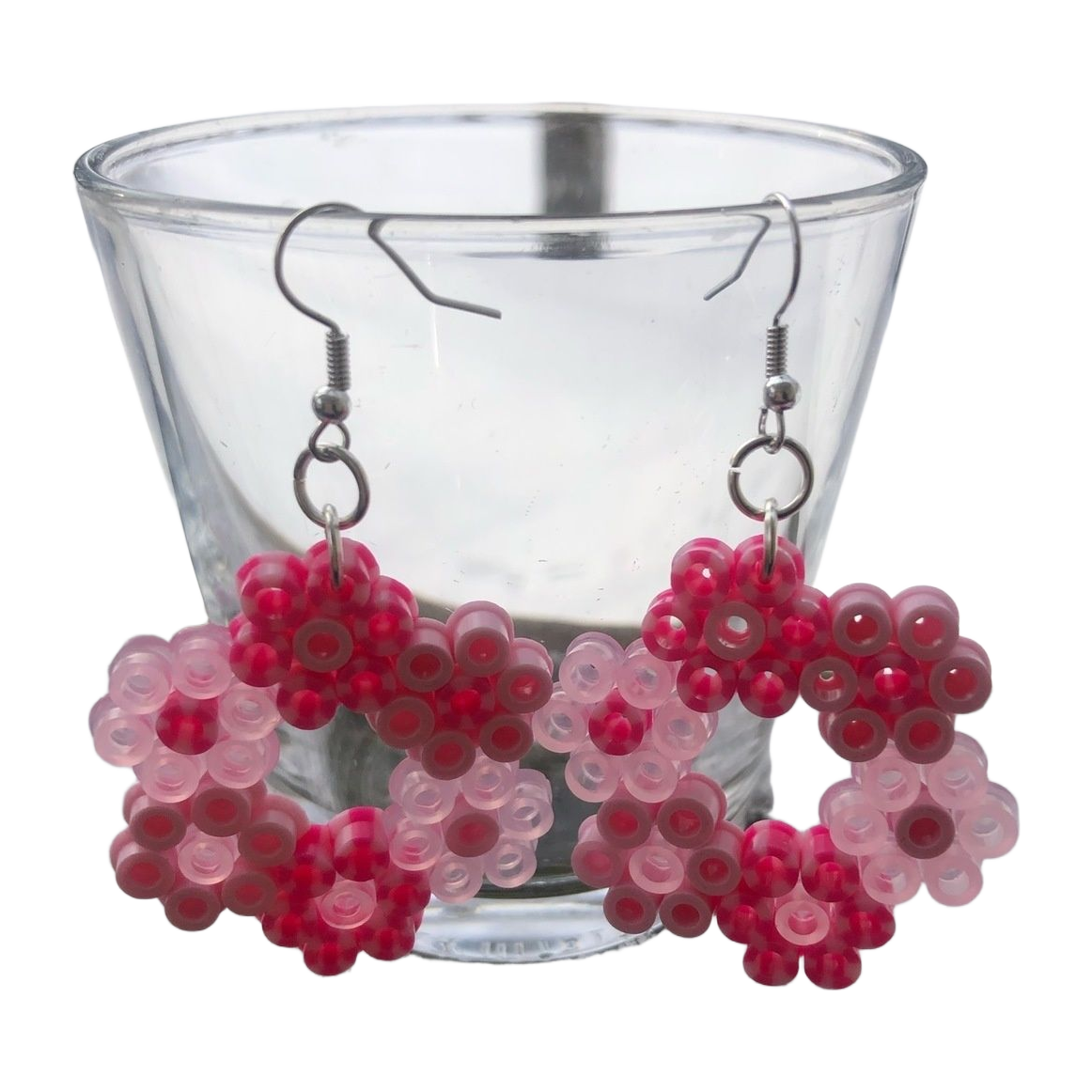 Uudet ihanat vaaleanpunaiset kukkakranssi korvakorut hamahelmistä. Koodilla KR59089 ilmainen toimitus. #earring #jewelry #handmade #summer #new