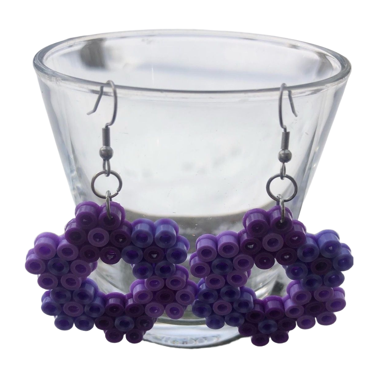Violetit kukkakorvakorut hamahelmistä. Koodilla KR59089 ilmainen toimitus. #new #handmade #earring #summer #jewelry
