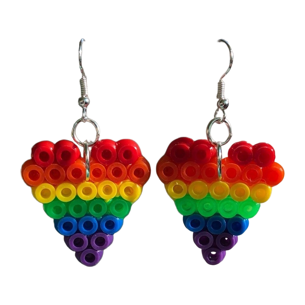 Uudet käsityönä tehdyt sateenkaaren väriset sydän korvakorut hamahelmistä. Koukut hopeoitua messinkiä. Nouto tai postitus. Koodilla KR59089 ilmainen toimitus. #pride #rainbow #earring #summer #heart