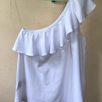 Valkoinen H&M L.O.G.G. one shoulder toppi. Koko M. Helma A-linjainen. Käyttämätön/ uusi, hintalappu kiinni. #oneshoulder #toppi #summer #kesä #white