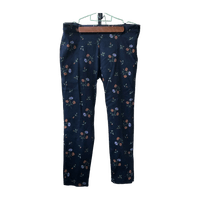 H&M tummansiniset kukkakuvioiset nilkkapituiset housut. Joustavat hyvin. Koko 44/ L. Pesty ja pidetty vain 2 kertaa. Saumakohdissa hieman värin haalistumista. Kivat housut! #juhlat #kesä #housut #nilkkapituisethousut #caprihousut #caprit #summer #kukkakuvio