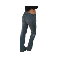 Lightwash flared denim jeans, relaxed fit, low-mid rise.