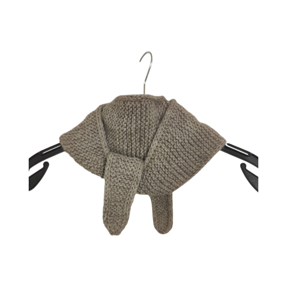 Sophie scarf tyylinen huivi. Väri harmaan beige. Tehty villa 80% + polyamidi 20% sekoite langasta käsityönä.