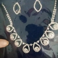 Myydään korupaketti. Glitter tyyliset näyttävät korvakorut sekä kaulakoru