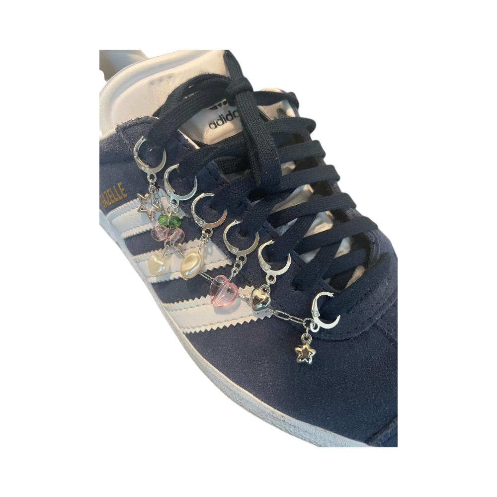 Monikäyttöiset kenkäkorut, joita voidaan käyttää myös korvakoruina💗 Näillä saat tennareistasi ainutlaatuiset. Setissä 4 paria renkaita ja 2 ketjua🫶🏻