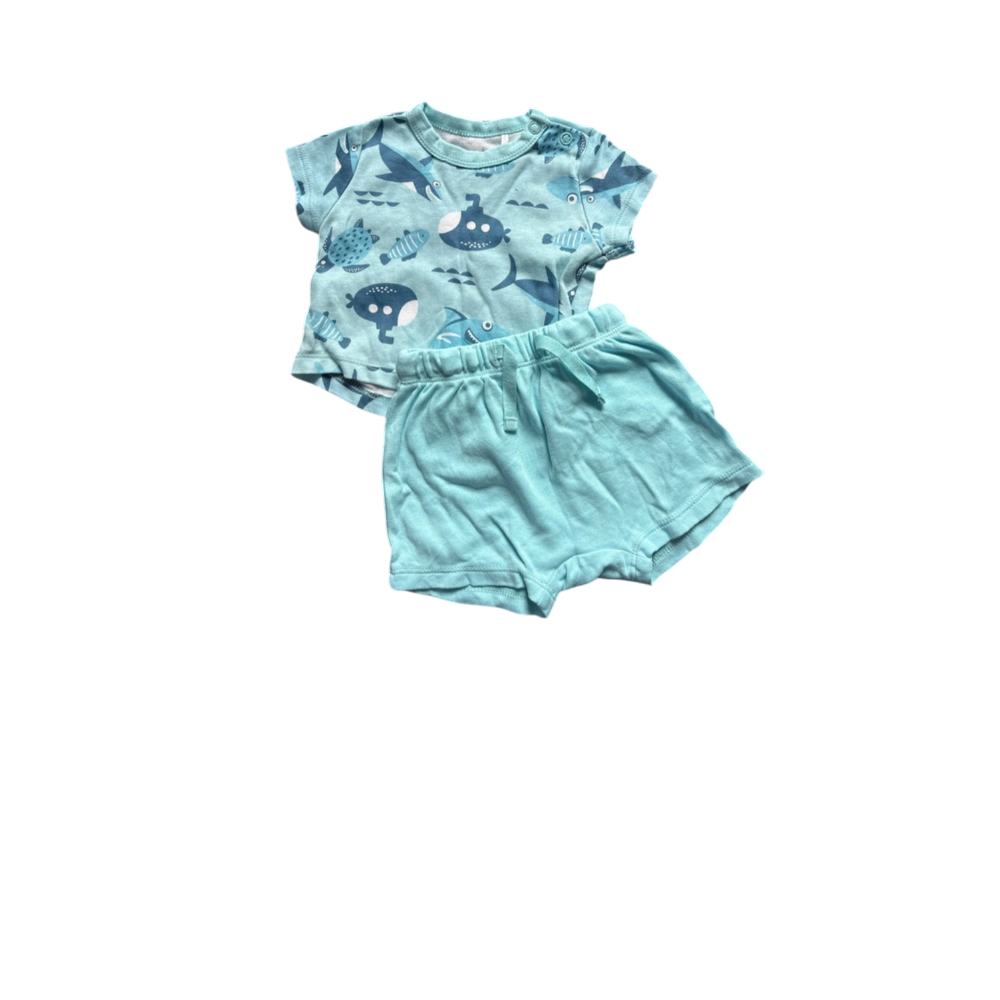Vauvan kesäsetti, t-paita ja shortsit meriaiheella. Vain käyttöönottopesty.