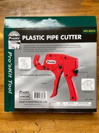 Uusi muoviputkileikkuri, laatikossa. Tarkemmat specsit kuvassa.
