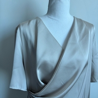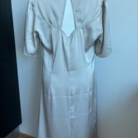 Beige midipituinen mekko, lyhyet hihat, avonainen selkä