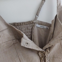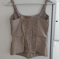 Uudenveroinen tyylikäs ihana toppi säädettävillä olkaimilla ja kauniilla yksityiskohdilla. Edessä napitus ja takana joustava resorikangas. Koko 36. Puuvilla/elastaani
