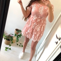 Uusi kaunis mutta lyhyt mekko. Olikin itselle vähän liian tiukka, menee hyvin XS ja S kokoiselle. Vähän läpinäkyvä kuten kuvasta näkyy mutta muuten todella kaunis. Pitkä vetskari takana helpottaa pukemista ja saa mekon istumaan nätisti.