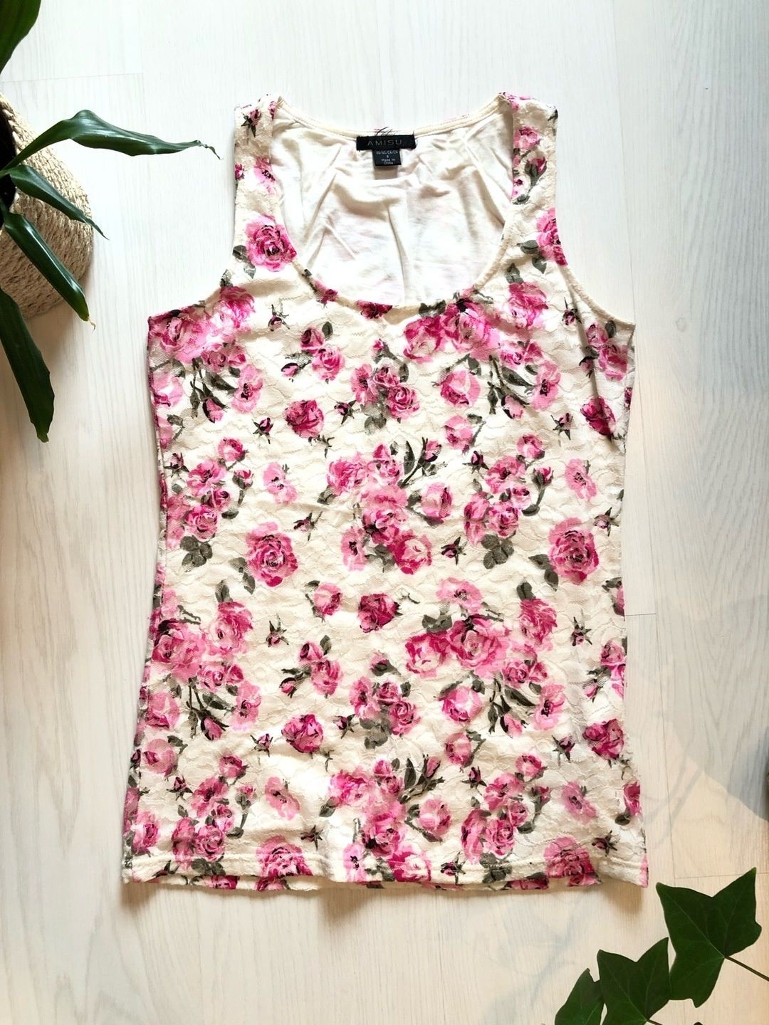 Ihana pitsi ruusu toppi! Mukavaa ja venyvää kangasta. Sisältä viskoosia. Kuin uusi! Koko S.