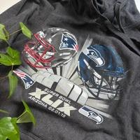 Upea Super Bowl huppari Arizona 2015 Seahawks & Patriots. Koko M mielestäni vastaa kokoa. Oversizenä menee S kokoiselle. Kangas ei jousta. Kiristys narut hupussa ja tasku edessä. Muutaman kerran käytetty. Siistissä kunnossa, ei nukkaa.