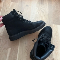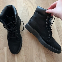 Timberland mustat nilkkurit nupukkia. Koko 38,5. Sisämitta 24,5cm. Kunnon puhdistuksella ja huollolla kengistä saa varmasti erinomaiset, ovat hyvässä kunnossa mutta käytön jälkeä vähän näkyy.