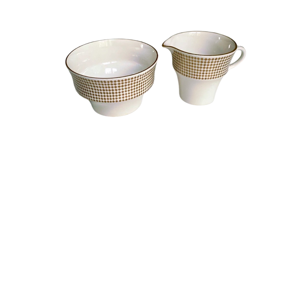 Arabian kermakko ja sokerikko, kultaisella koristelulla. Kermakon pohjassa on kulumaa, jonka näkee kuvasta.