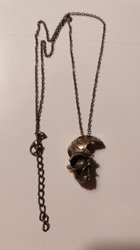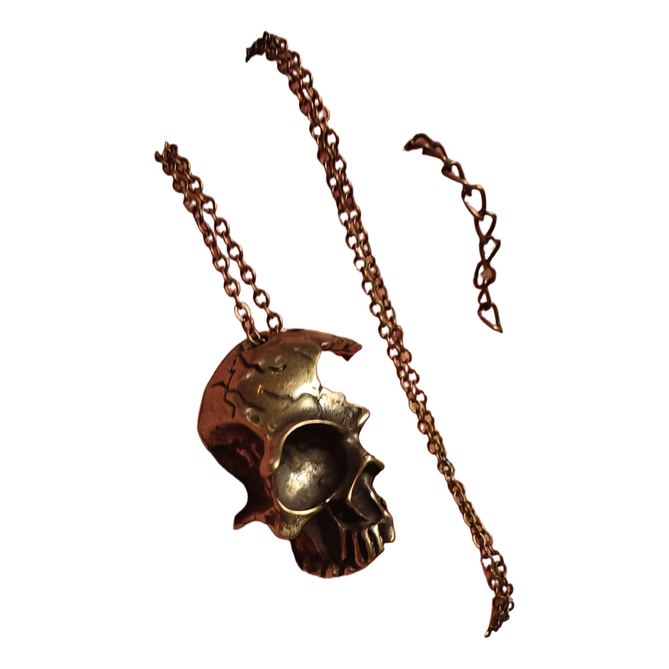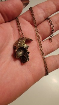 Kultaisenruskea pääkalloriipus metalliketjulla.