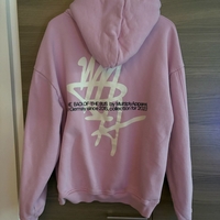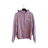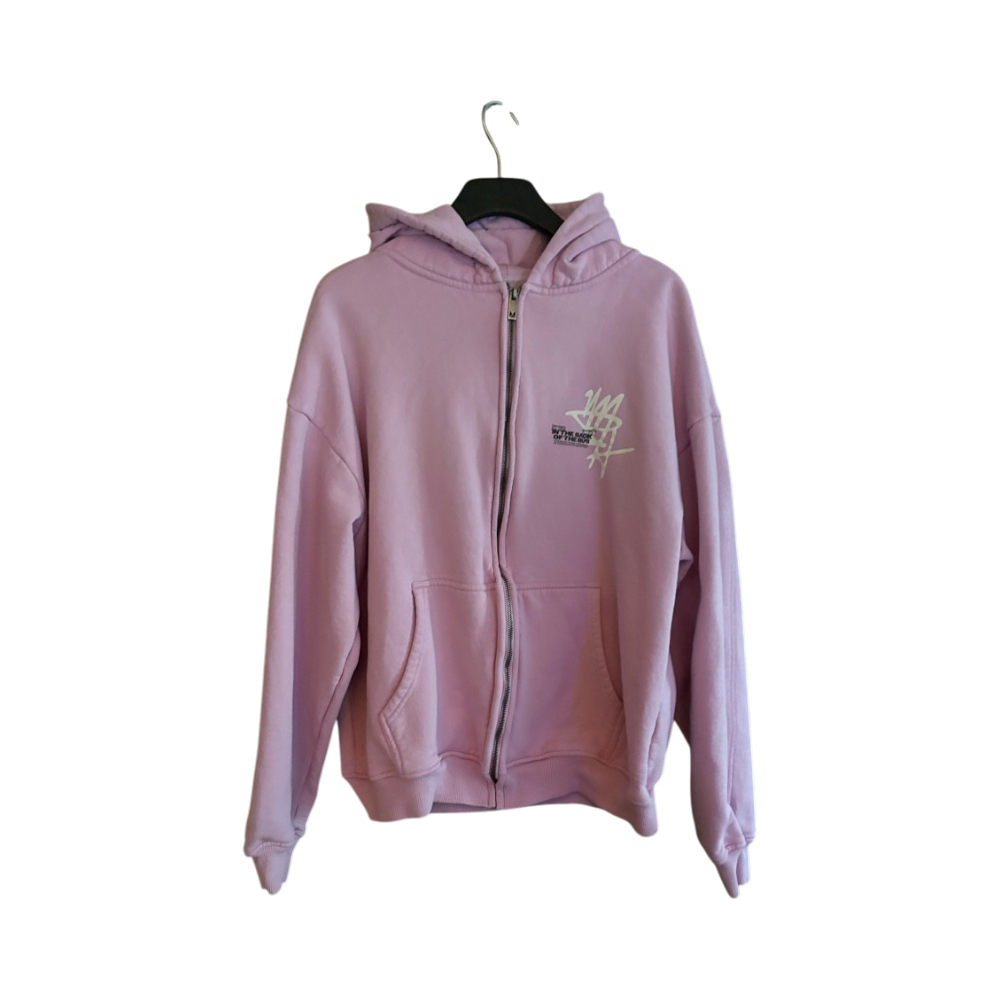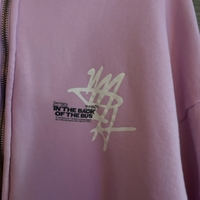 Vaaleanpunainen vetoketjuhuppari, printti rinnassa, rento malli.
