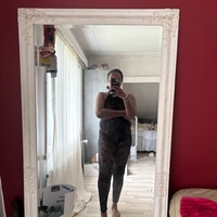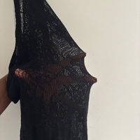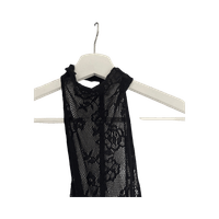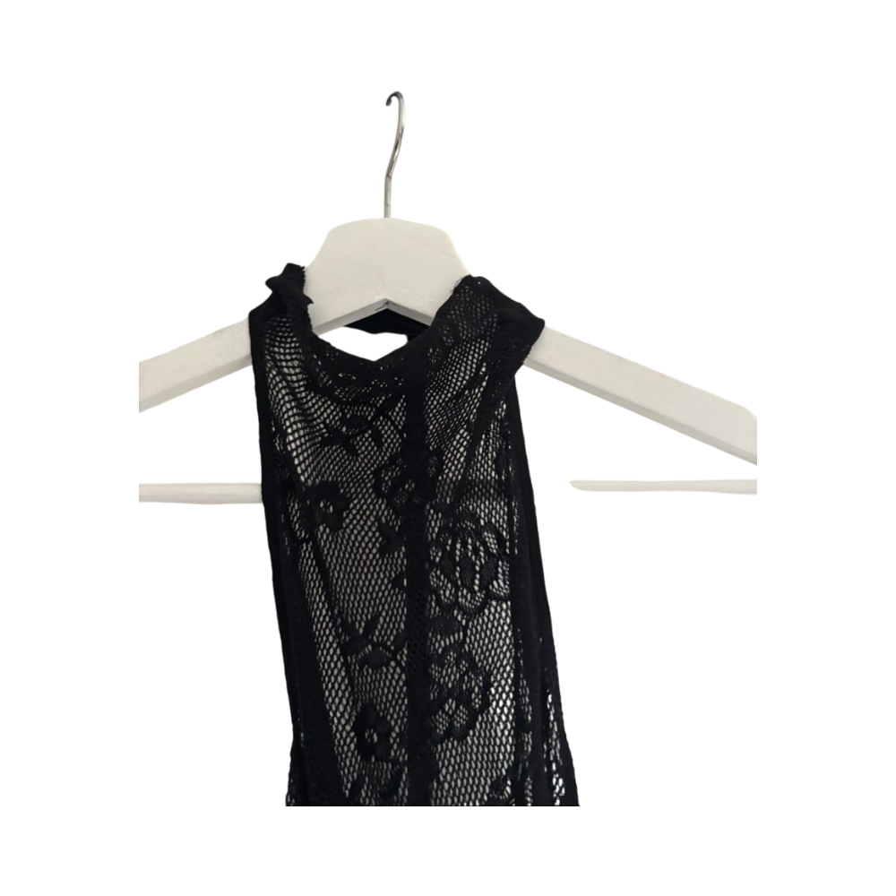 Läpinäkyvä musta pitsibody, korkea kaulus, vartalonmyötäinen. Kerran käytetty.