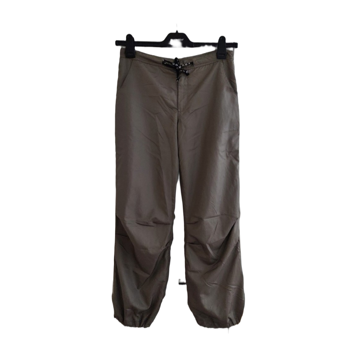 Hyväkuntoiset ihanan kevyet housut taskuilla. Vyötäröllä ja lahkeissa kiristysnauhat, vuori miellyttävän hengittävää verkkokangasta. Koko XS.