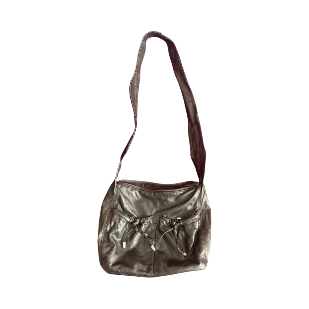 Old leather black bag, i used it one time, but its also thrifted, so i dont know how many people used it before. Condition is excellent, no defects and have much pockets. Bag is spacious and cool.