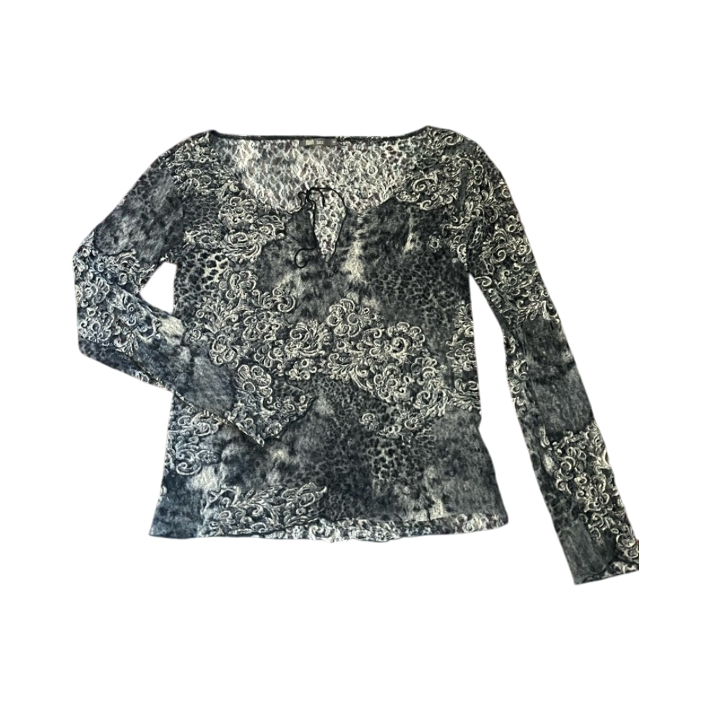 Kuviollinen pitkähihainen pitsipaita, nauhakuosi kauluksessa. Koko S-M. #y2k #alternative #avantgarde #coquette #opium