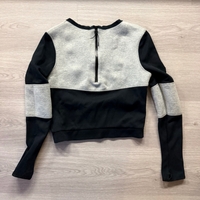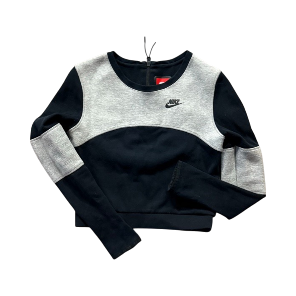 Lyhyt, väriblokattu Nike-collegepaita, vetoketjulla selässä.