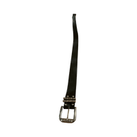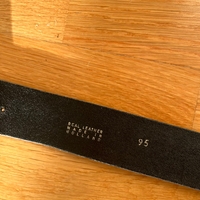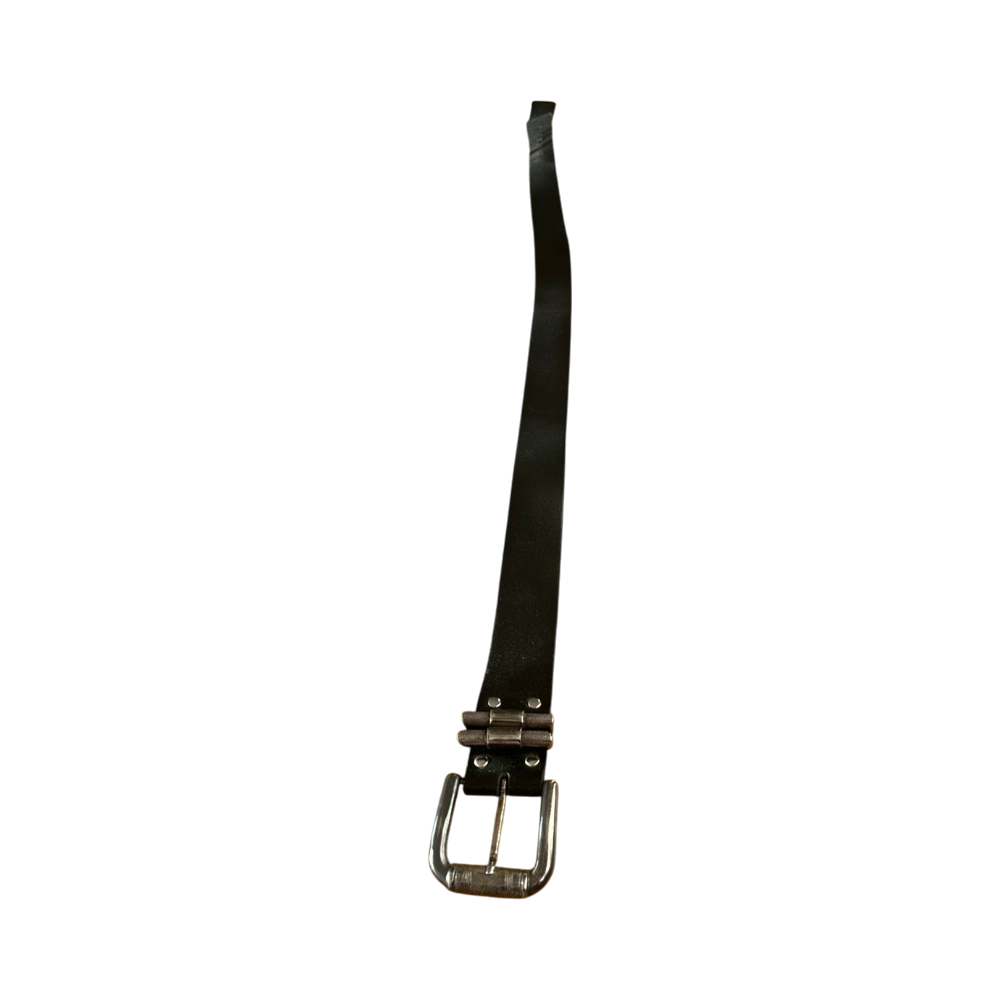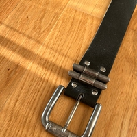 Aitoa nahkaa, metallisolki ja koristeelliset renkaat.