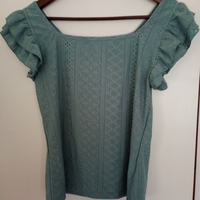 Salvianvihreä joustava pitsipaita röyhelöhihalla, naisille.