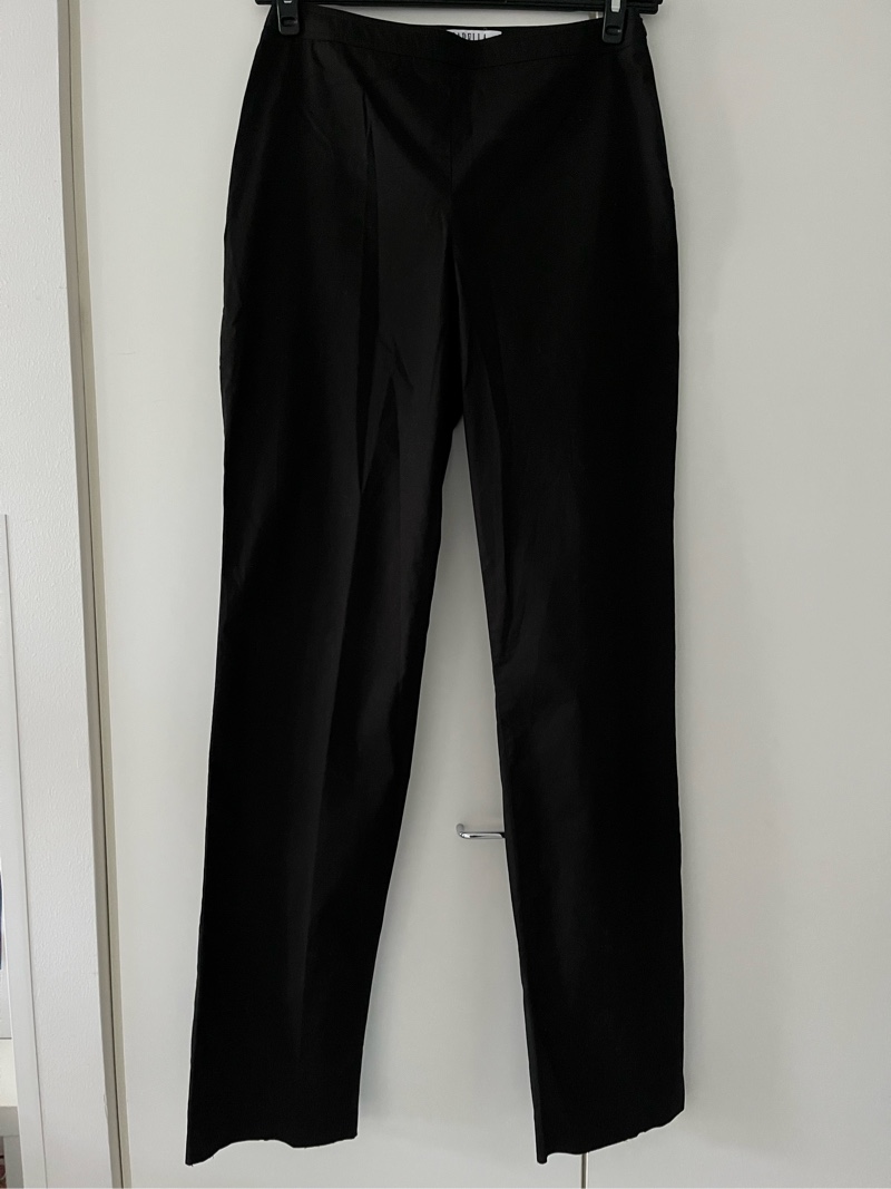 Marella suoralahkeiset housut koossa 36. Hyvin simppelit vain piilovetoketju sivussa. Lahkeita ei jostain syystä ole viimeistelty tai joku ne purkanut. Itse olen pitänyt lahkeita käärittynä kerran ovat aika pitkät niin ovat olleet siistit sillä. Muuten erinomaisessa kunnossa