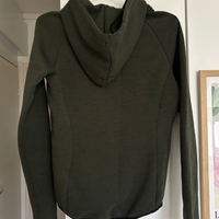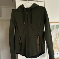 Vähän käytön jälkeistä nukkaantumista. Vetoketjutaskut ja kiristyksellinen huppu.