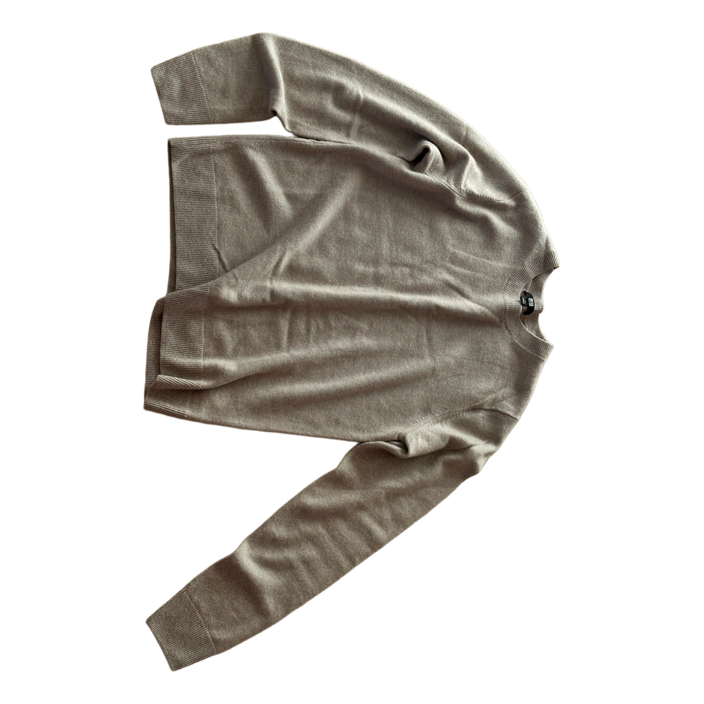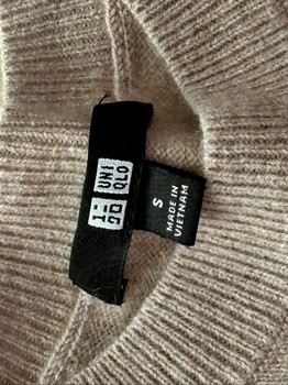 Uniqlo sweater in beige, made of 100% cashmere. Features a crew neckline and long sleeves. Size S.