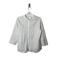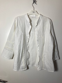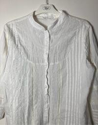 Paljon yksityiskohtia, kuten pitsejä, ompeleita, kuvioita ja laskoksia.