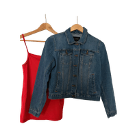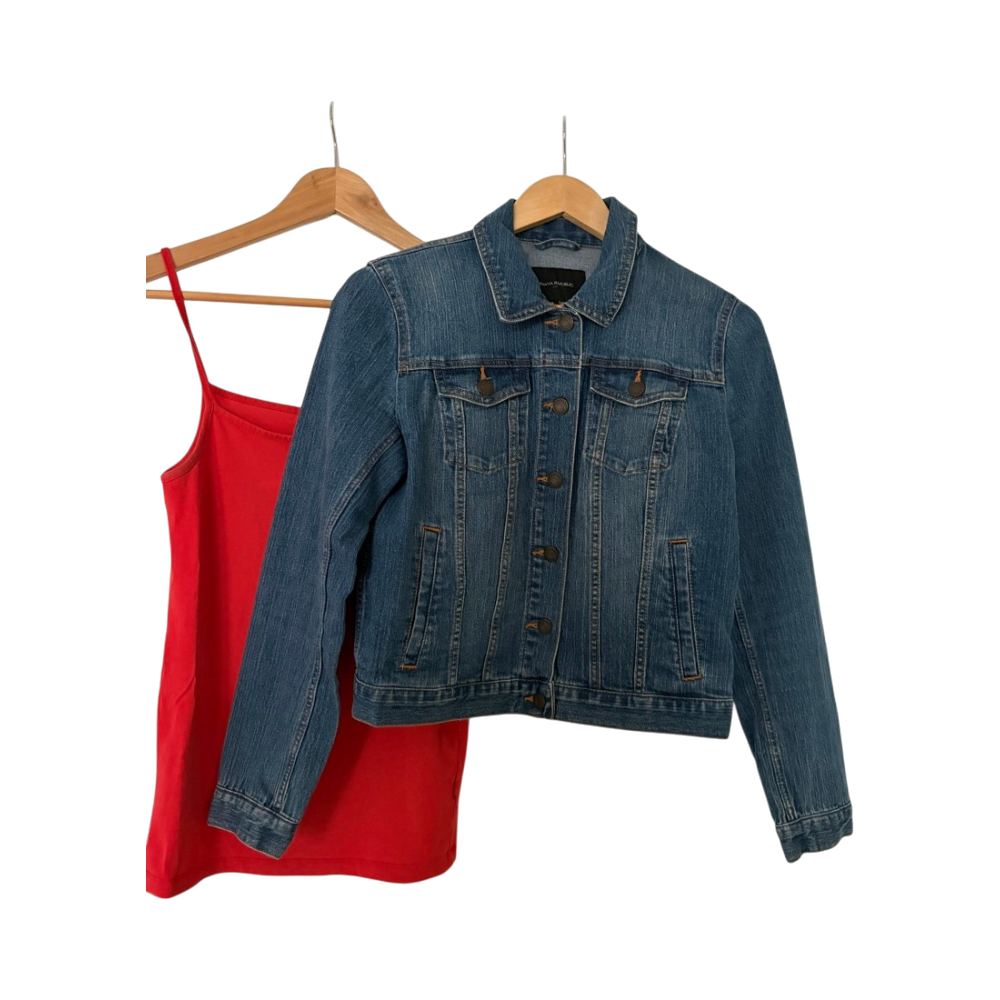 Laadukas klassinen sininen farkkutakki. Edessä ja hihansuissa nappi kiinnitys. Vyötäröllä takana napit leveyden säätämiseen. Joustava kangas.